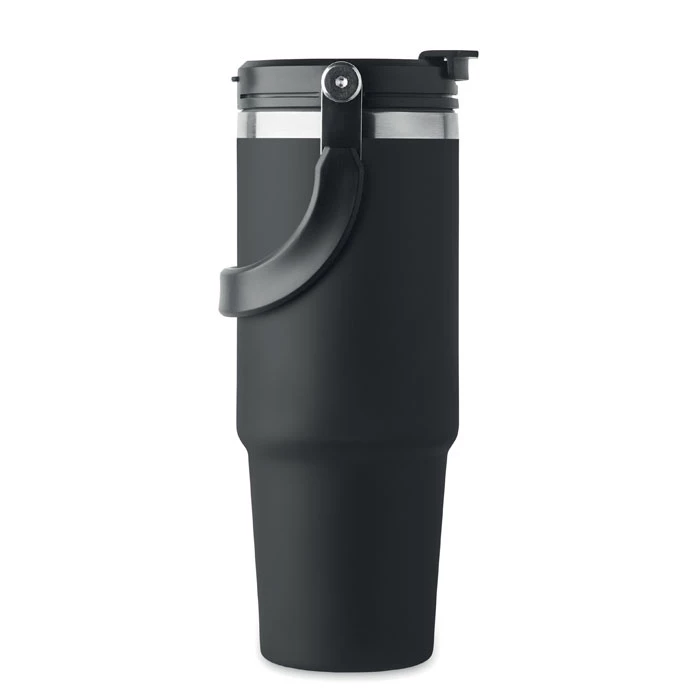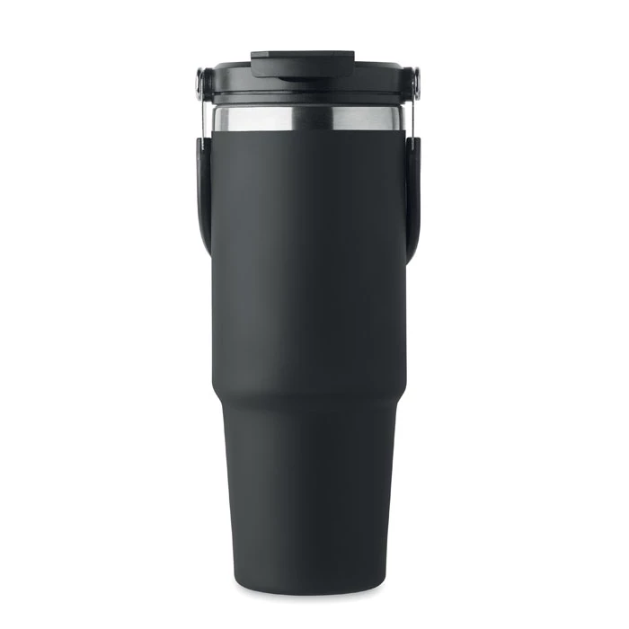 Kubek o podwójnych ściankach z recyklingowanej stali nierdzewnej (90% z recyklingowanej stali nierdzewnej i 10% ze stali nierdzewnej) z pokrywką z wewnętrzną słomką, składanym ustnikiem i otworem do bezpośredniego picia. Pojemność 850 ml.