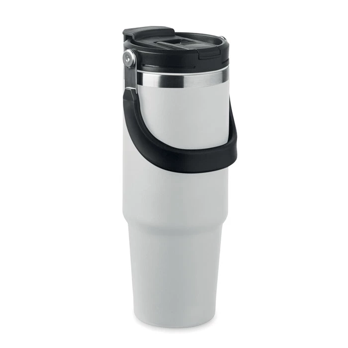 Kubek o podwójnych ściankach z recyklingowanej stali nierdzewnej (90% z recyklingowanej stali nierdzewnej i 10% ze stali nierdzewnej) z pokrywką z wewnętrzną słomką, składanym ustnikiem i otworem do bezpośredniego picia. Pojemność 850 ml.