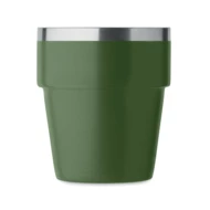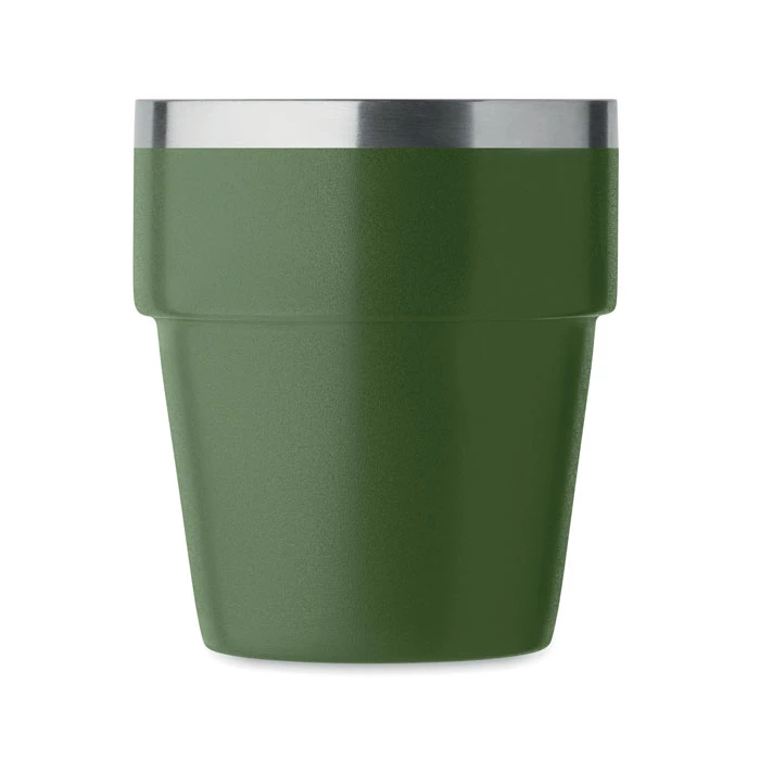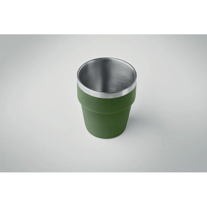Kubek z podwójnymi ściankami ze stali nierdzewnej pochodzącej z recyklingu (90% stali nierdzewnej pochodzącej z recyklingu i 10% stali nierdzewnej). Pojemność: 250 ml.