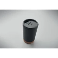 Kubek o podwójnych ściankach z PP z korkową podstawą i zamykaną pokrywką z ustnikiem z PS. Pojemność: 300 ml.