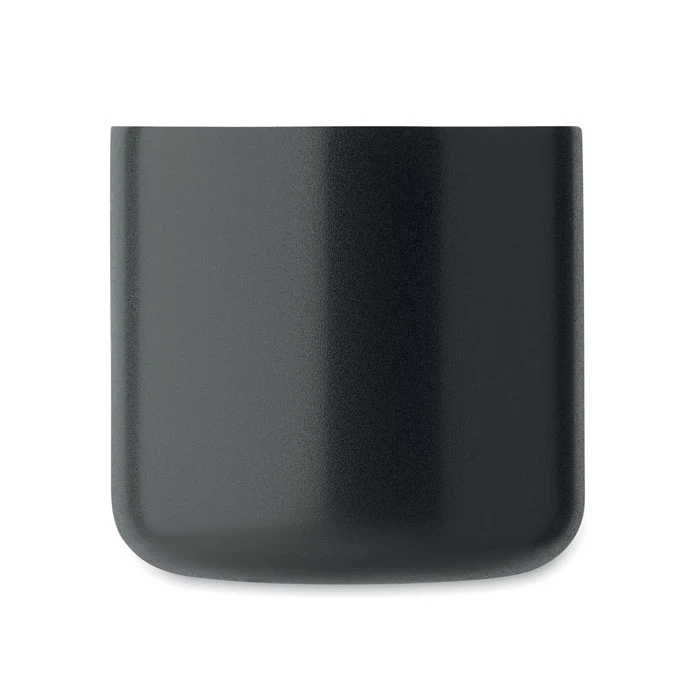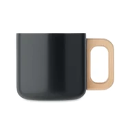 Kubek z podwójnymi ściankami z przetworzonej stali nierdzewnej (90% przetworzonej stali nierdzewnej i 10% stali nierdzewnej) z drewnianym uchwytem. Pojemność: 350 ml.