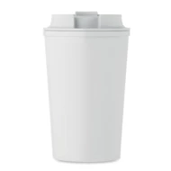 Kubek z podwójnymi ściankami z kukurydzy PLA z pokrywką do picia z PP z wewnętrznym TPR. Pojemność: 350 ml.