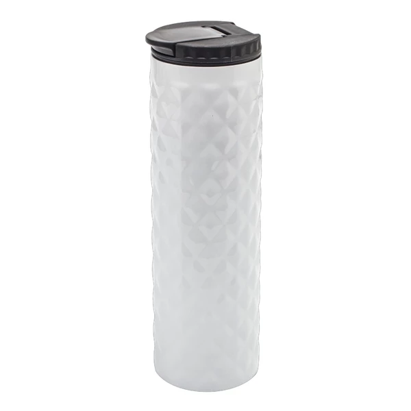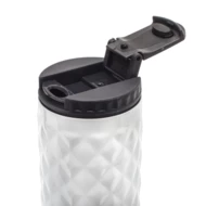 Szczelny kubek izotermiczny - termos o pojemności 450 ml wykonany ze stali nierdzewnej pokrytej lakierem. Oryginalna pikowana powierzchnia. Wewnętrzna ścianka wykonana ze stali o podwyższonej jakości 18/8. Próżnia pomiędzy ściankami zapewnia bardzo dobre właściwości termoizolacyjne. Szczelne zamknięcie - leak proof zapobiega wyciekaniu płynów. Zamknięcie typu flip up sip. Utrzymuje ciepło do 8 godzin.