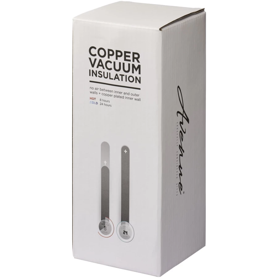 Ten wytrzymały kubek idealnie sprawdzi się w podróży i zmieści się w większości uchwytów. Wieczko szczelnie przylega do kubka, posiada otwieranie typu „flip-top”. Kubek posiada konstrukcję próżniową z podwójnymi ściankami i miedzianą izolacją, które utrzymują napoje gorące przez 8 godzin, a zimne przez 24 godziny. Taka konstrukcja zapobiega kondensacji na zewnątrz kubka. Pojemność to 500 ml. Całość zapakowana jest w pudełko upominkowe Avenue.