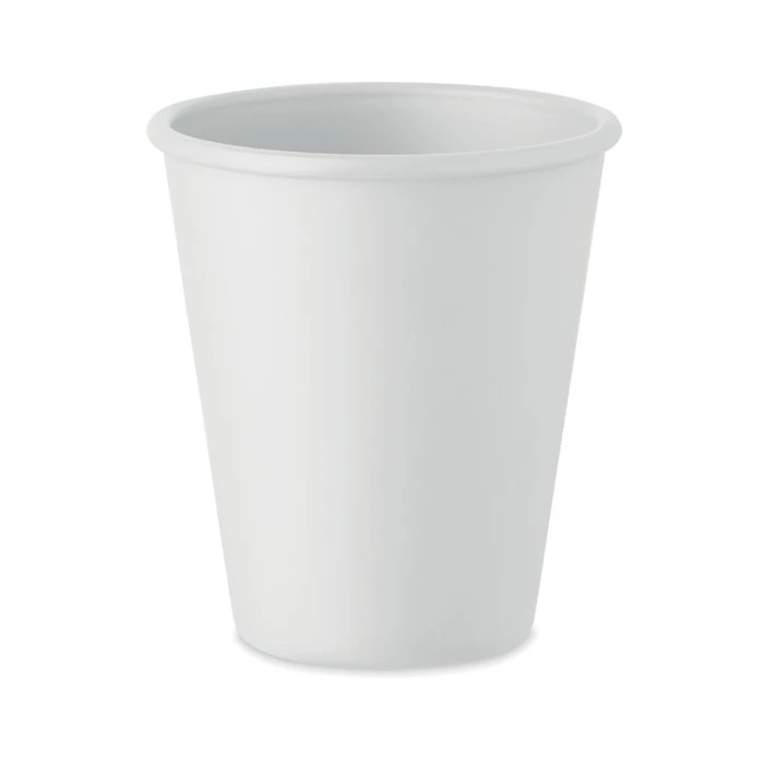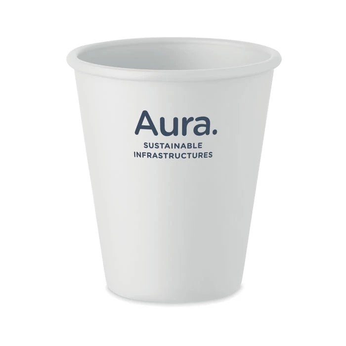 Kubek wielokrotnego użytku z pojedynczą ścianką z kukurydzy PLA. Pojemność: 200 ml. Ponieważ jest to kubek jednościenny, nadal może dochodzić do wymiany ciepła.