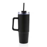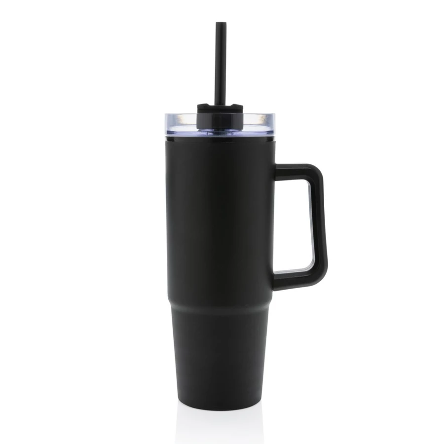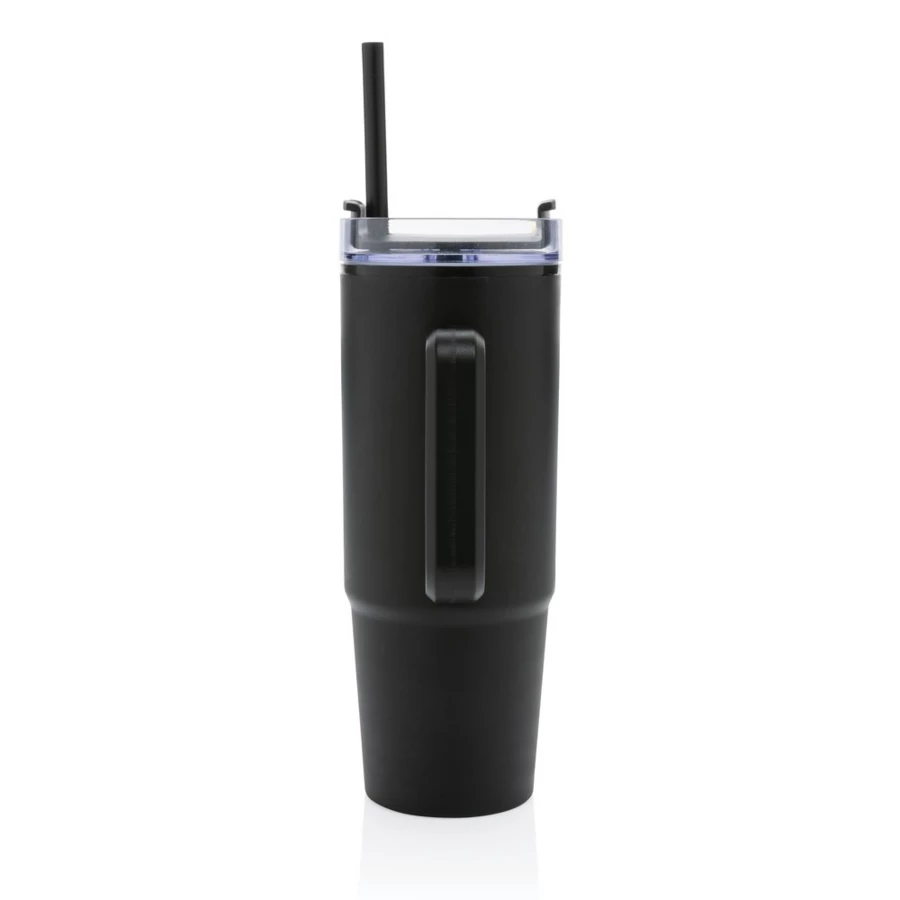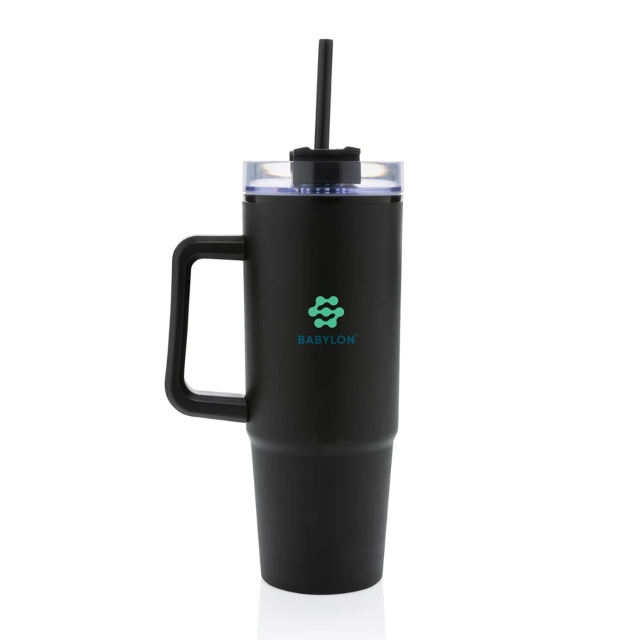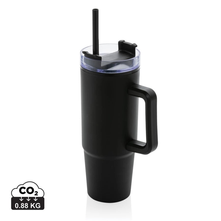 Kubek podróżny 750 ml, ergonomiczny uchwyt, obrotowe wieczko trzema pozycjami (dziubek do picia, otwór na słomkę, zamknięte), wykonany z materiałów z recyklingu, całkowita zawartość materiałów obliczona na podstawie wagi całkowitej przedmiotu: 80%, wyłącznie mycie ręczne, w pudełku z papieru kraftowego z certyfikatem FSC®