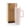 Kubek podróżny 750 ml, ergonomiczny uchwyt, obrotowe wieczko trzema pozycjami (dziubek do picia, otwór na słomkę, zamknięte), wykonany z materiałów z recyklingu, całkowita zawartość materiałów obliczona na podstawie wagi całkowitej przedmiotu: 80%, wyłącznie mycie ręczne, w pudełku z papieru kraftowego z certyfikatem FSC®