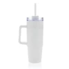 Kubek podróżny 750 ml, ergonomiczny uchwyt, obrotowe wieczko trzema pozycjami (dziubek do picia, otwór na słomkę, zamknięte), wykonany z materiałów z recyklingu, całkowita zawartość materiałów obliczona na podstawie wagi całkowitej przedmiotu: 80%, wyłącznie mycie ręczne, w pudełku z papieru kraftowego z certyfikatem FSC®