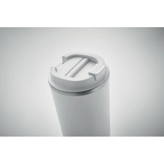 Kubek z podwójnymi ściankami z recyklingowanej stali nierdzewnej (90% z recyklingowanej stali nierdzewnej i 10% ze stali nierdzewnej) i pokrywką z PP. Pojemność: 510 ml. Nie przecieka.