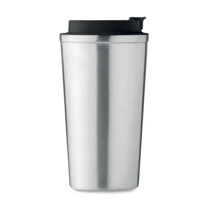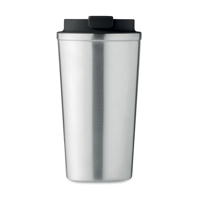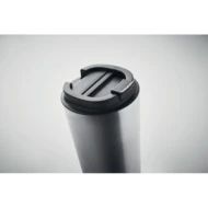 Kubek z podwójnymi ściankami z recyklingowanej stali nierdzewnej (90% z recyklingowanej stali nierdzewnej i 10% ze stali nierdzewnej) i pokrywką z PP. Pojemność: 510 ml. Nie przecieka.