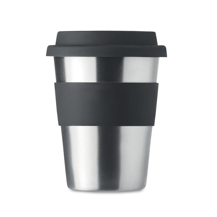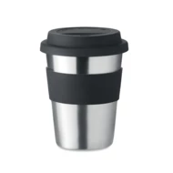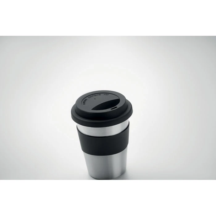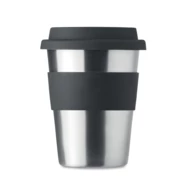 Jednościenny kubek ze stali nierdzewnej z silikonową pokrywką i uchwytem. Pojemność 350 ml. Ponieważ jest to kubek z pojedynczą ścianką, może dochodzić do wymiany ciepła.