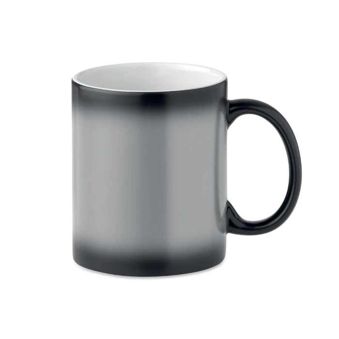 Ceramiczny kubek 300ml ze specjalną powłoką do sublimacji. Kubek zmienia kolor na indywidualny nadruk podczas napełniania cieczą o temp. min. 50°C. Pakowany w biały indywidualny kartonik.