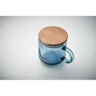 Żebrowany szklany kubek z akacjową pokrywką. Pojemność: 300 ml. FSC®-certified | FSC 100%, W16.3, FSC-C213206