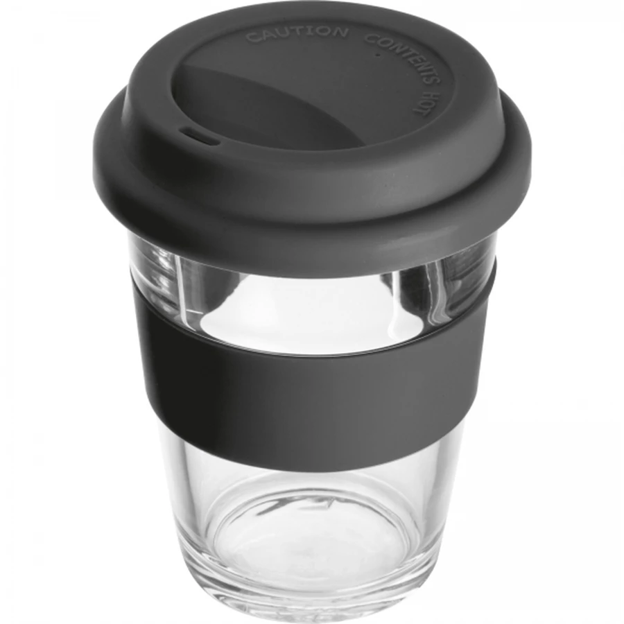 Kubek szklany z pokrywką 300 ml - czarny - (NMC-62572-03)