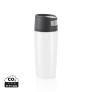 Kubek termiczny 300 ml, stal nierdzewna na zewnątrz, wnętrze z PP, szczelne wieczko z przyciskiem z boku, nie wymaga obsługi oburącz, utrzymuje temperaturę napojów gorących do 4 godzin, wzór zastrzeżony®