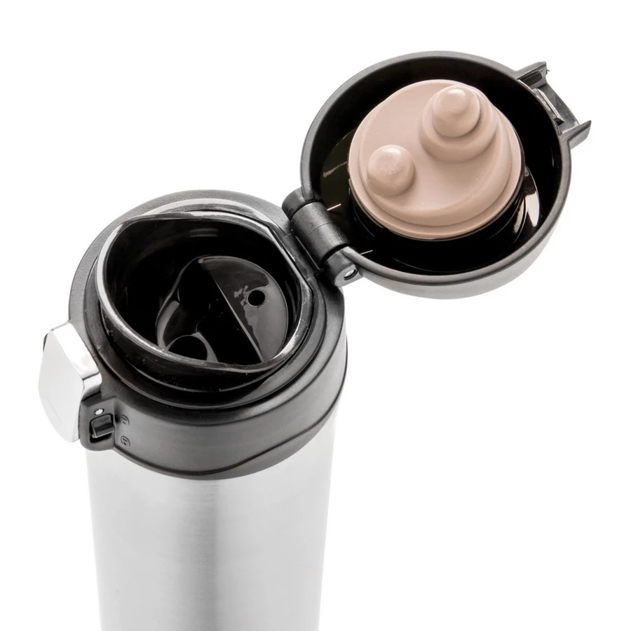 Kubek termiczny 300 ml, podwójne ścianki ze stali nierdzewnej z próżnią pomiędzy, obsługa jedną ręką, wykonany z materiałów pochodzących z recyklingu z certyfikatem RCS, całkowita zawartość materiałów z recyklingu obliczona na podstawie wagi całkowitej przedmiotu: 71%, w pudełku z papieru kraftowego z certyfikatem FSC®, utrzymuje temperaturę napojów gorących do 20 godzin oraz zimnych do 15 godzin