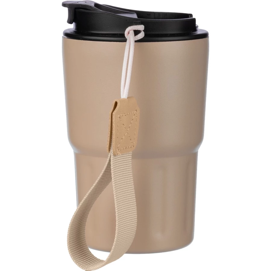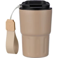 Kubek termiczny 320 ml, posiada podwójne ścianki ze stali nierdzewnej z próżnią między ściankami, co spowalnia oddawanie temperatury na zewnątrz, zachowując funkcje termosu, pasek ułatwiający noszenie lub przypięcie, plastikowe wieczko z otwarciem umożliwiającym łatwą obsługę jedną ręką, dobrze trzyma temperaturę ciepłych i zimnych napojów, utrzymuje temperaturę napojów gorących do 10 godzin +leakproof