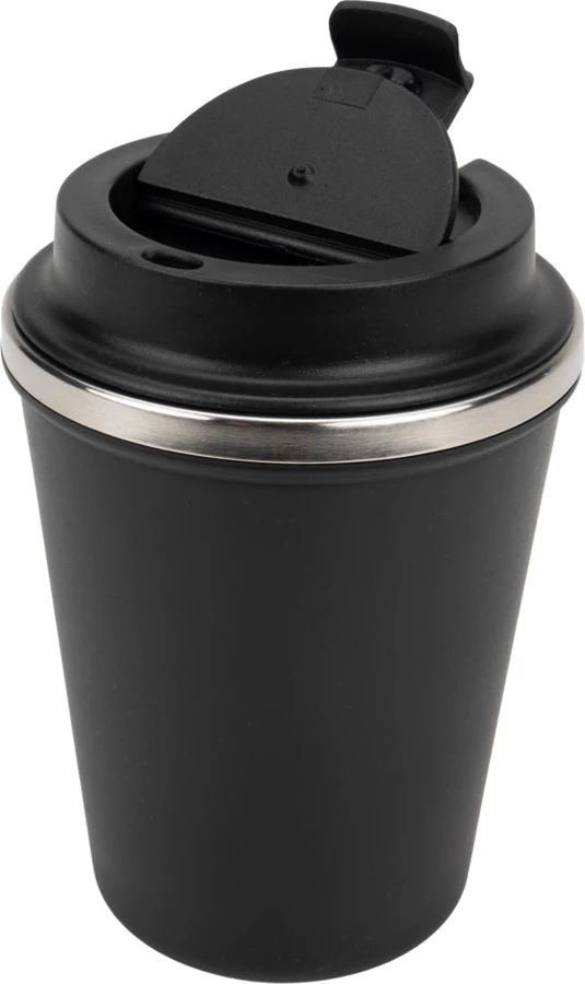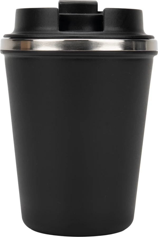 Kubek z podwójnymi ściankami ze stali nierdzewnej, z zewnątrz z plastikową powłoką z materiału pochodzącego z recyklingu, o pojemności 350 ml, z zamykanym ustnikiem. Kubek utrzymuje ciepło napoju przez 4 godziny.