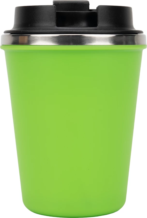 Kubek z podwójnymi ściankami ze stali nierdzewnej, z zewnątrz z plastikową powłoką z materiału pochodzącego z recyklingu, o pojemności 350 ml, z zamykanym ustnikiem. Kubek utrzymuje ciepło napoju przez 4 godziny.