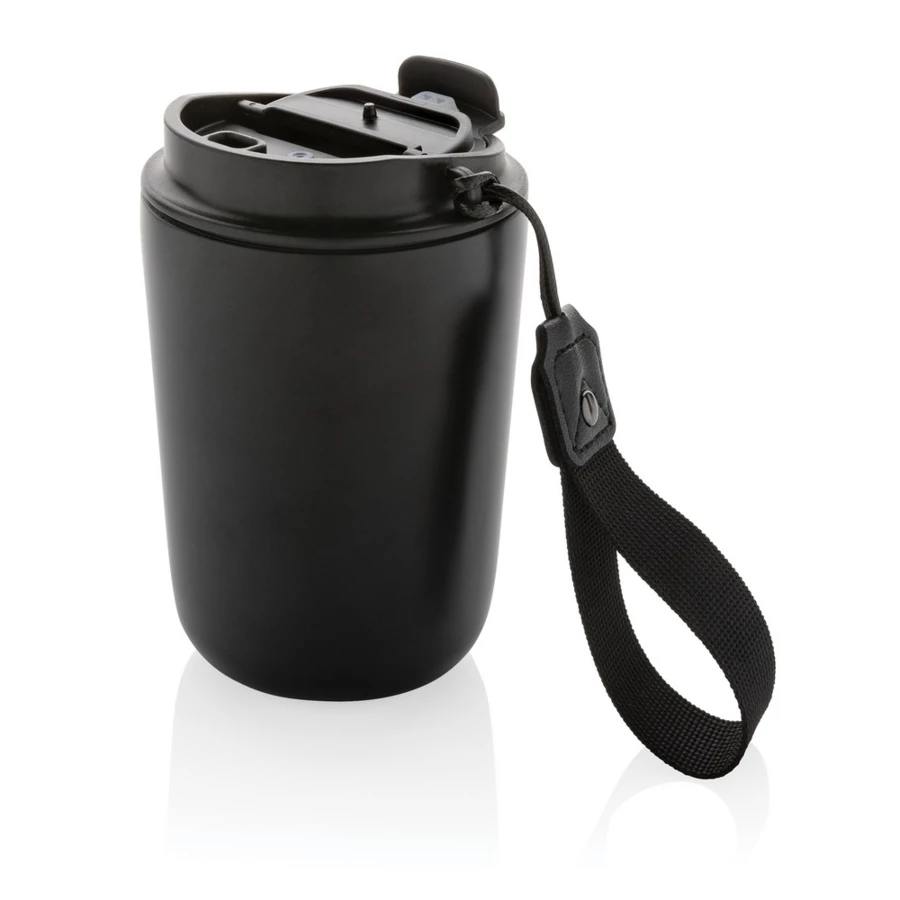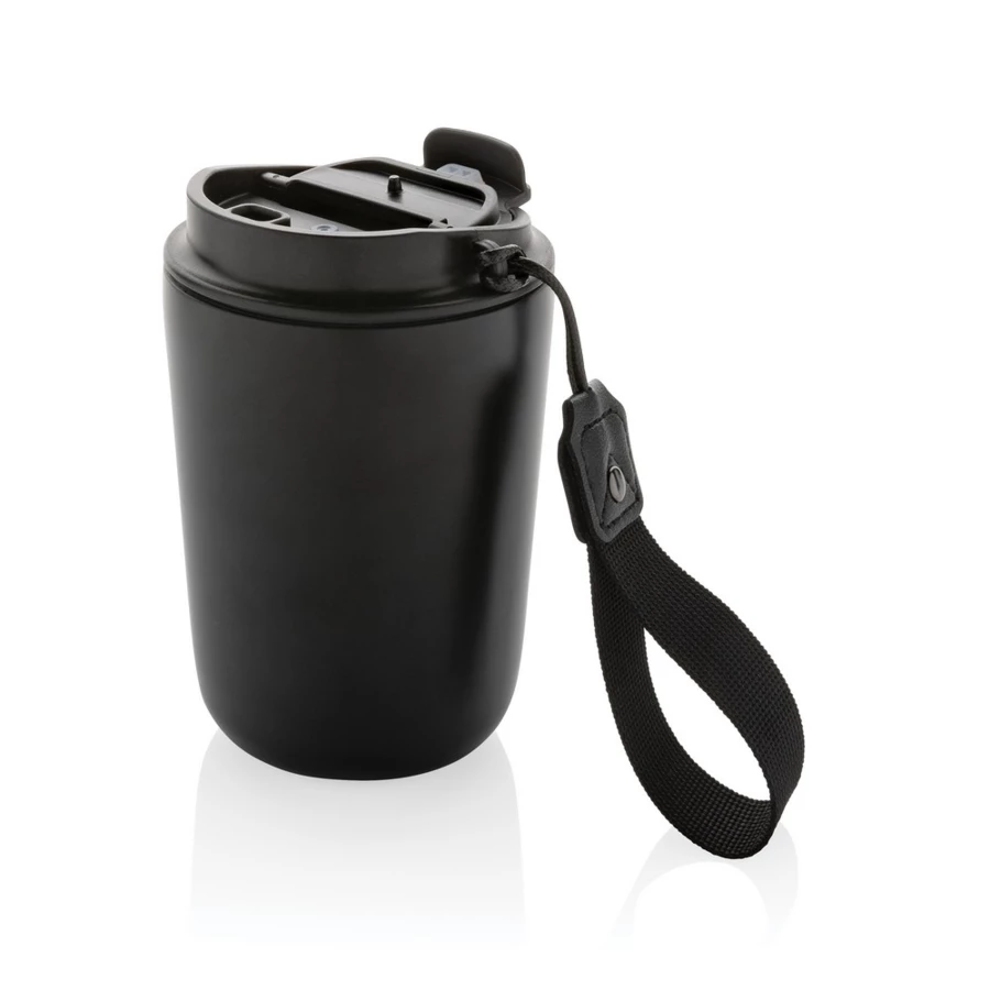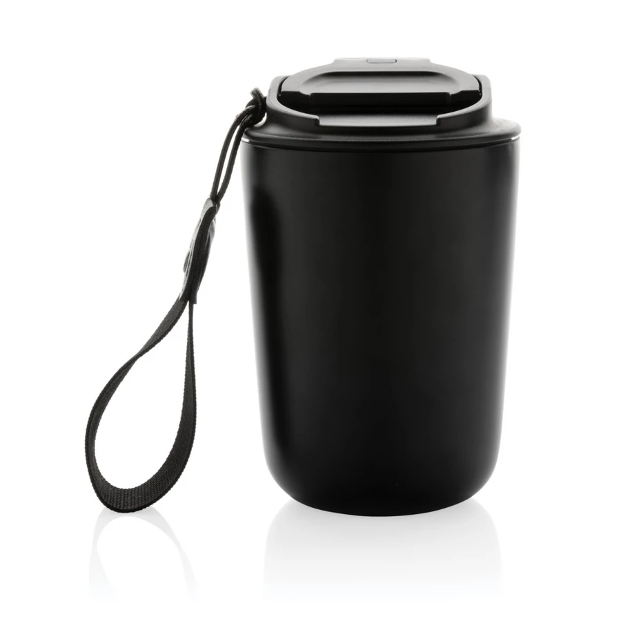 Kubek termiczny 380 ml, szczelny, wykonany ze stali nierdzewnej z recyklingu z certyfikatem RCS, całkowita zawartość materiałów z recyklingu obliczona w oparciu o wagę całkowitą przedmiotu: 74%, ślad węglowy produktu: 1,75 kg CO2