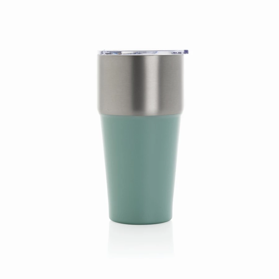 Kubek termiczny 500 ml, wykonany z materiałów z recyklingu z certyfikatem RCS, podwójne ścianki z próżnią pomiędzy, utrzymuje temperaturę napojów ciepłych do 5 godzin i zimnych do 15 godzin, wyłącznie mycie ręczne, całkowita zawartość materiałów z recyklingu obliczona na podstawie wagi całkowitej produktu: 81%