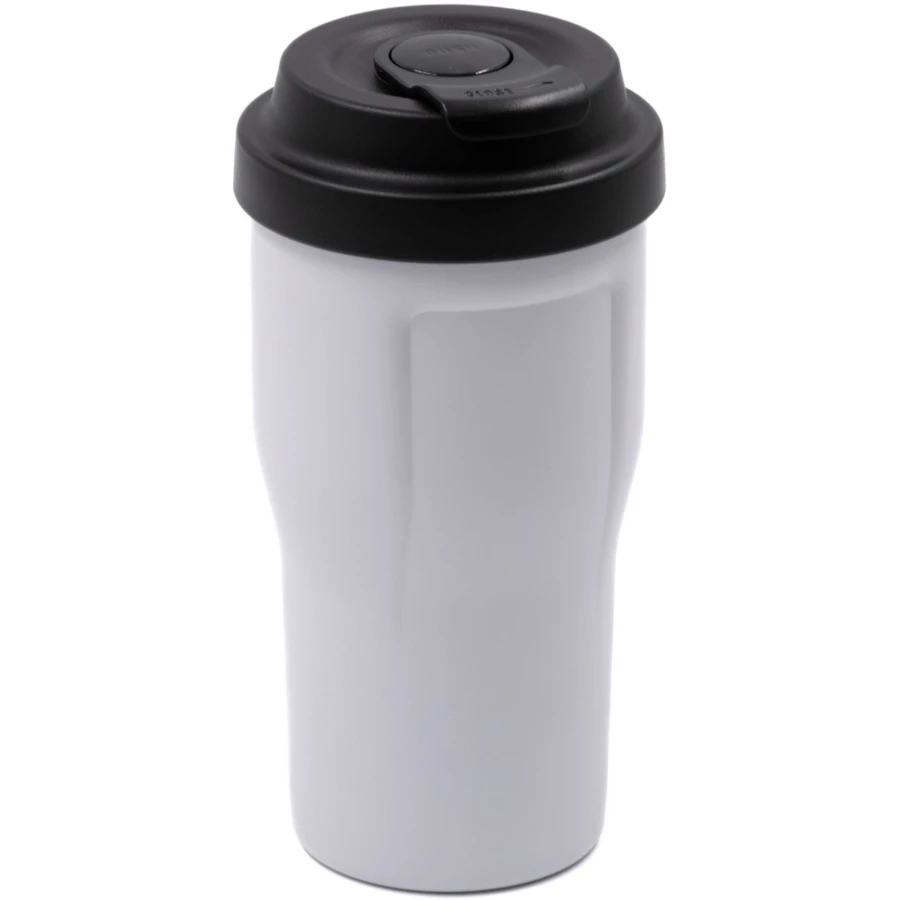 Kubek termiczny 510 ml BrandCharger Posh Café, wieczko otwierane przyciskiem, posiada podwójne ścianki ze stali nierdzewnej z próżnią między ściankami, co spowalnia oddawanie temperatury na zewnątrz, zachowując funkcje termosu, można myć w zmywarce, produkt wykonany ze stali nierdzewnej