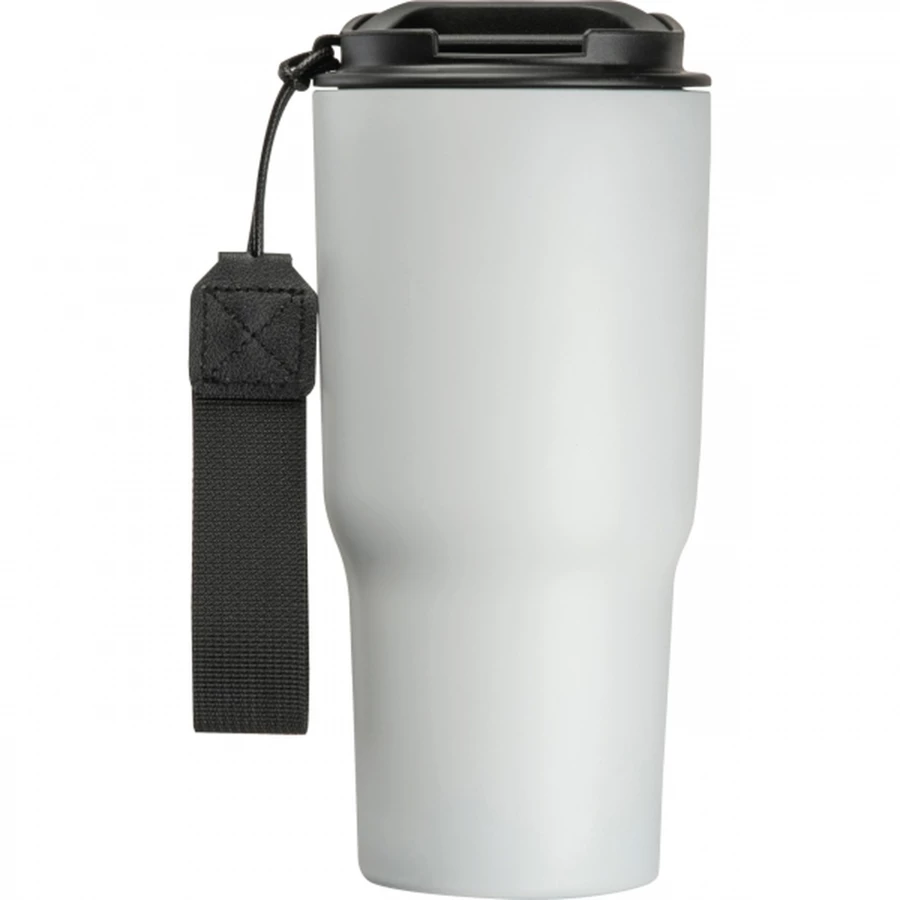 Kubek termiczny, wykonany ze stali nierdzewnej z recyklingu, z podwójnymi ściankami, o pojemności 550 ml. Kubek posiada praktyczny pasek do przenoszenia.