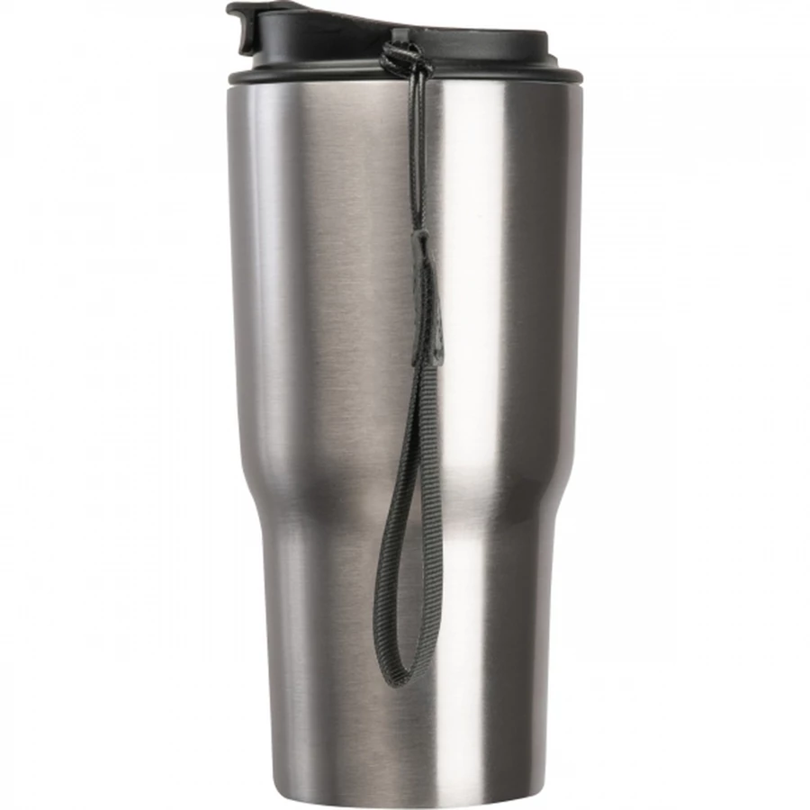 Kubek termiczny, wykonany ze stali nierdzewnej z recyklingu, z podwójnymi ściankami, o pojemności 550 ml. Kubek posiada praktyczny pasek do przenoszenia.