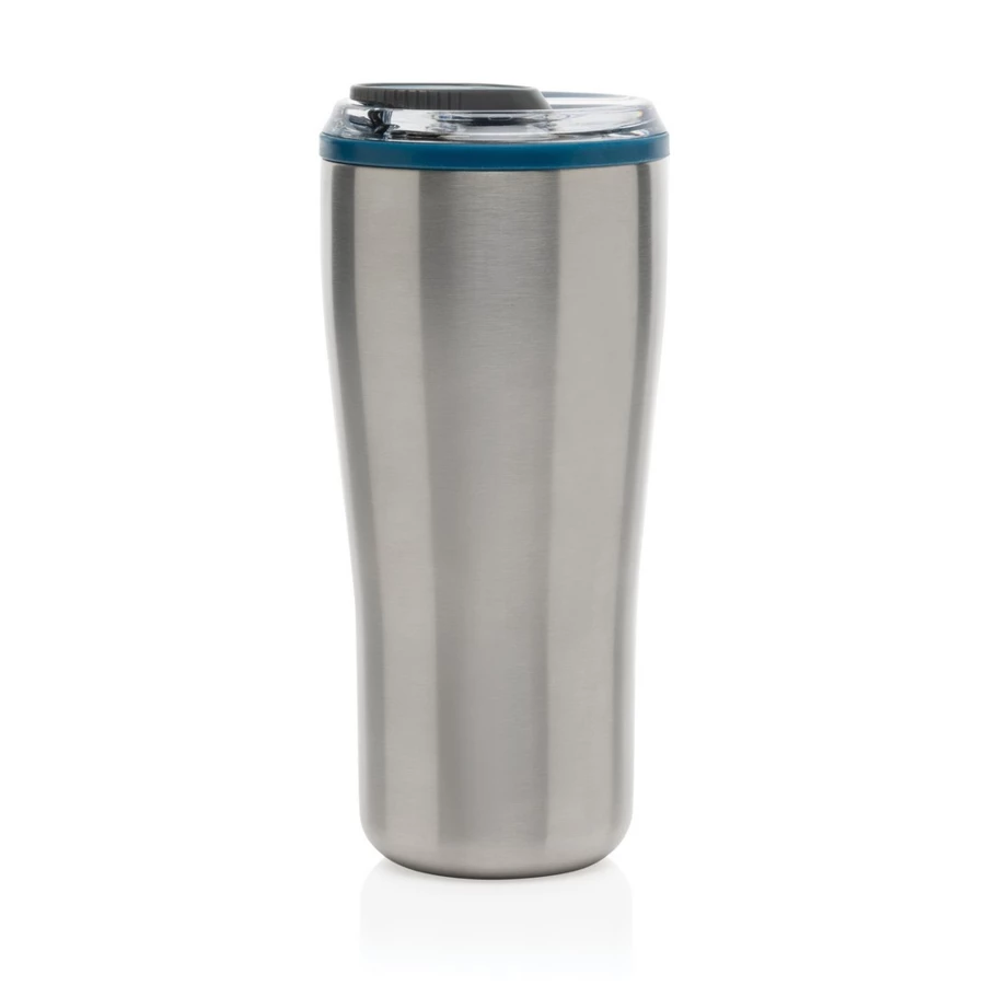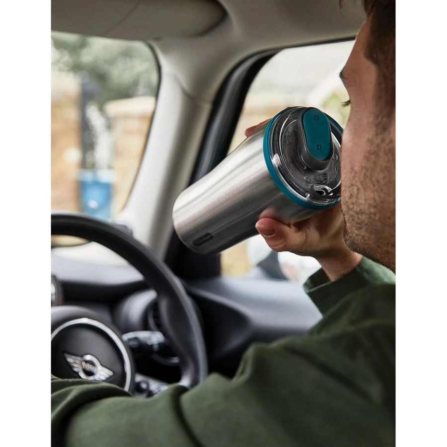 Kubek termiczny 600 ml z uchwytem, szczelny, podwójne ścianki ze stali nierdzewnej z próżnią pomiędzy, wieczko z zamknięciem umożliwiającym obsługę jedną ręką, nadaje się do zimnych i gorących napojów, klasa termiczna: B, wyłącznie mycie ręczne