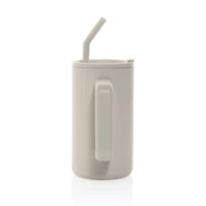 Kubek termiczny 800 ml, posiada słomkę z silikonową nakładką, zakręcane wieczko, wykonany ze stali nierdzewnej z recyklingu, podwójne ścianki ze stali nierdzewnej z próżnią między ściankami, dzięki czemu zachowuje funkcje termosu i długo utrzymuje temperaturę nie oddając jej na zewnątrz, zalecane mycie ręczne