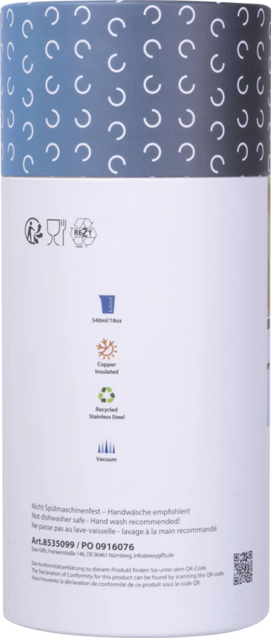 Smukły i elegancki kubek termiczny La Louviere z serii Color Edition o pojemności 540 ml został stworzony dla osób, które nie chcą rezygnować ze stylu nawet w drodze. Wykonany z recyklingowanej stali nierdzewnej z miedzianą izolacją, utrzymuje napoje w idealnej temperaturze przez wiele godzin. Ciemna miedziana pokrywka i eleganckie akcenty w kolorze złotym, brązowym lub srebrnym u podstawy tworzą wyrafinowaną, spójną stylistykę. Smukły kształt idealnie pasuje do uchwytów na napoje w samochodzie. Produkt objęty jest 2-letnią gwarancją.