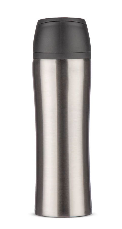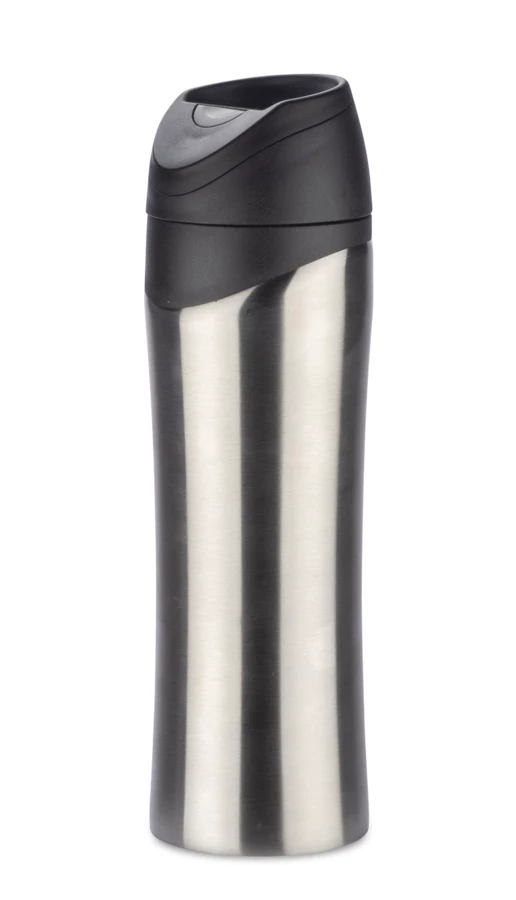 Kubek MIKE to produkt łączący w sobie cechy kubka termicznego i termosu. Cechuje się wysoką termoizolacją, trzymając temperaturę napoju ok. 10 godzin. Wygodny ustnik, otwierany systemem click pozwala swobodnie się napić, a także zapewnia wysoką szczelność. Wykonany ze stali nierdzewnej.