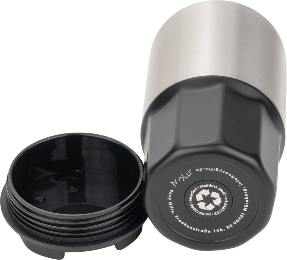 Kubek termiczny od MoLu, z podwójnymi ściankami ze stali nierdzewnej, niepochłaniającej zapachów. Pojemność 500 ml.