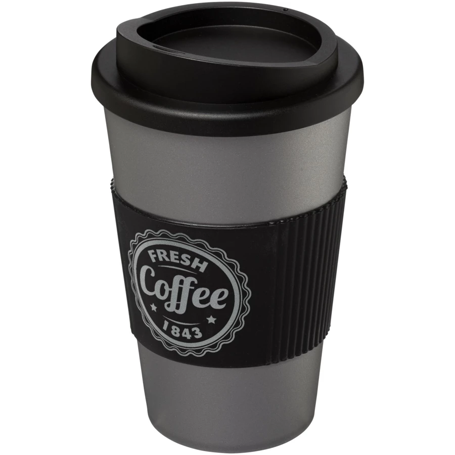 Dwuwarstwowy, izolowany kubek z zakręcaną pokrywą odporną na zalanie, z silikonowym uchwytem. Pojemność wynosi 350 ml. Mieszaj i łącz kolory, aby stworzyć idealny kubek. Wykonano w Wielkiej Brytanii. Produkt wolny od BPA. Można myć w zmywarce.