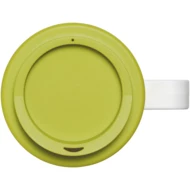 Dwuwarstwowy, izolowany kubek z zakręcaną pokrywą odporną na zalanie i uchwytem. Zewnętrzna warstwa kubka wykonana jest z tworzywa sztucznego pochodzącego z recyklingu. Kubek charakteryzuje się pełnokolorowym, zawijanym wzorem dopasowanym do produktu, dzięki czemu jest trwały. Zgodny z EN12875-1; nadaje się do mycia w zmywarce oraz podgrzewania w kuchence mikrofalowej. Pojemność wynosi 350 ml. Mieszaj i łącz kolory, aby stworzyć idealny kubek. Skontaktuj się z działem obsługi klienta, aby uzyskać informacje o dodatkowych opcjach kolorystycznych. Wykonano w Wielkiej Brytanii. Oferowany w białym pudełku upominkowym. Produkt wolny od BPA. Można myć w zmywarce.