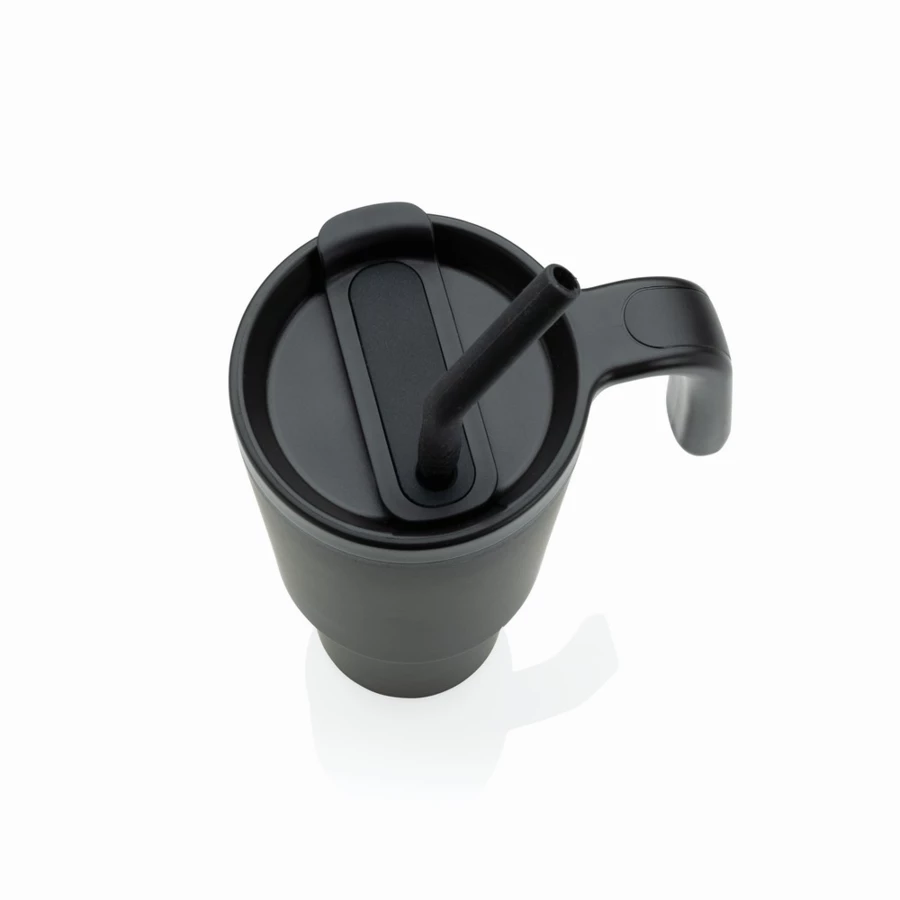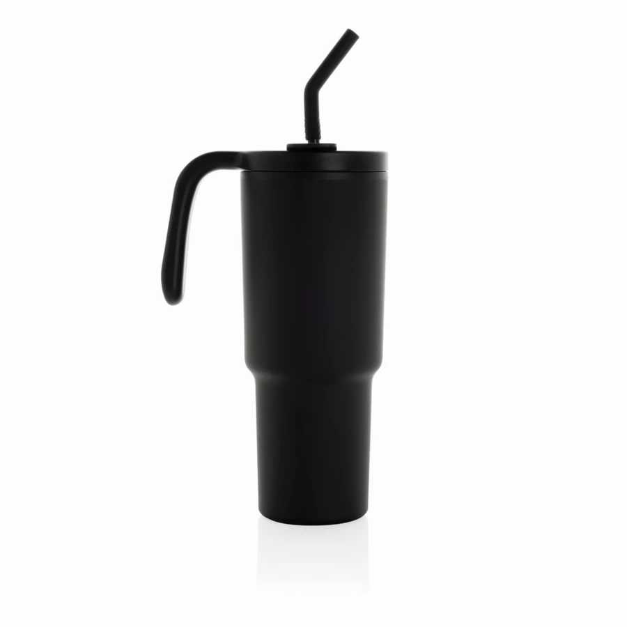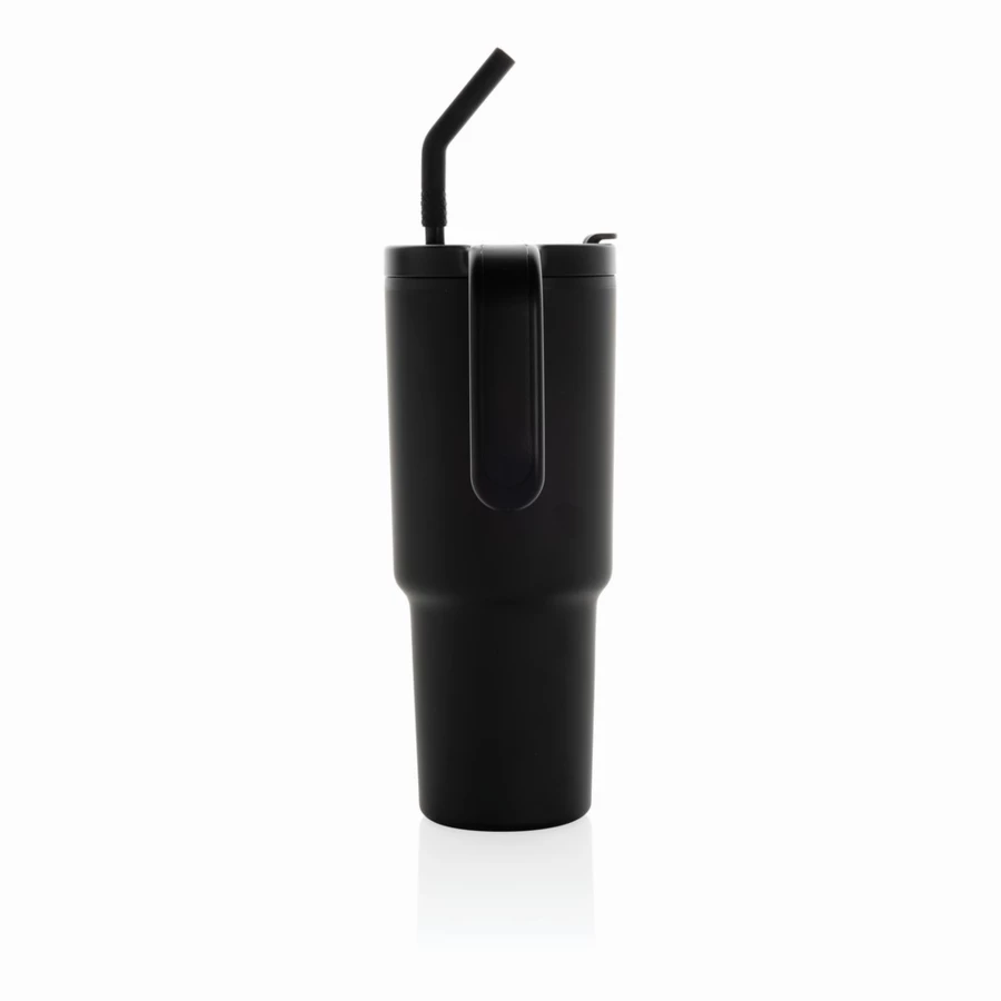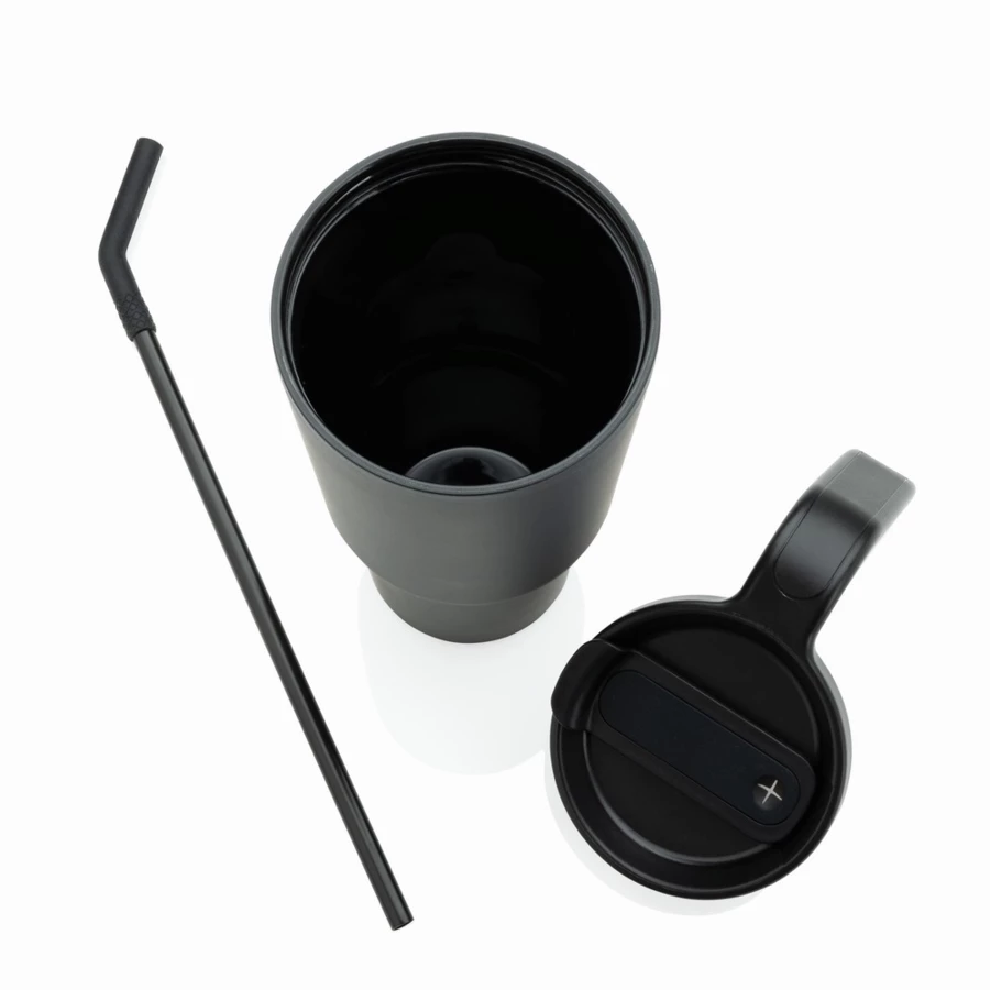 Kubek termiczny 900 ml, wykonany ze stali nierdzewnej z recyklingu, podwójne ścianki ze stali nierdzewnej z próżnią pomiędzy, zakręcane wieczko z dziubkiem i słomką, zalecane mycie ręczne
