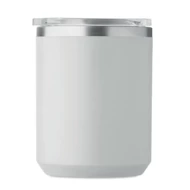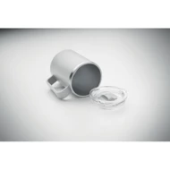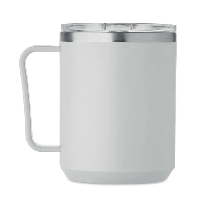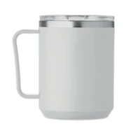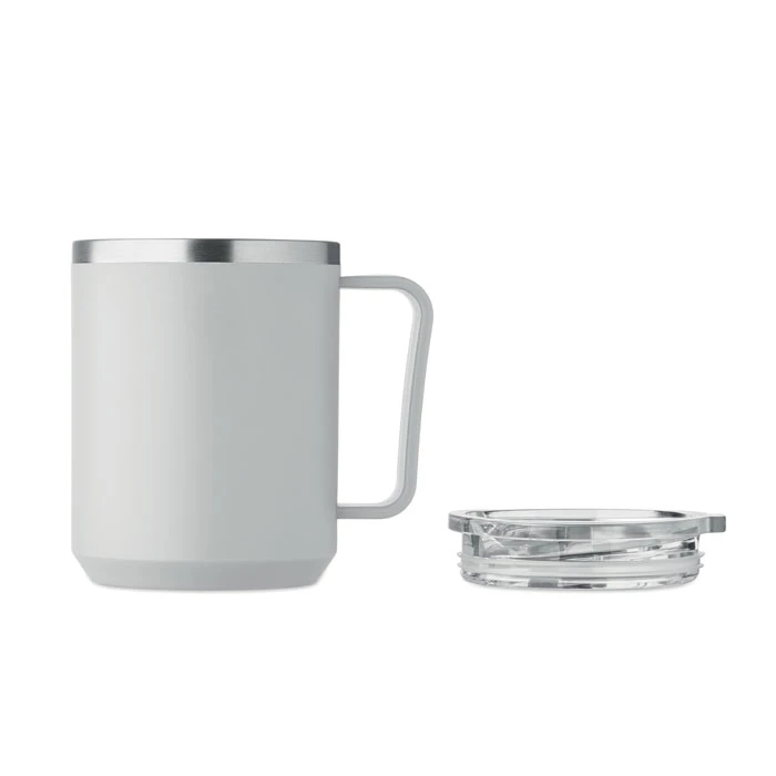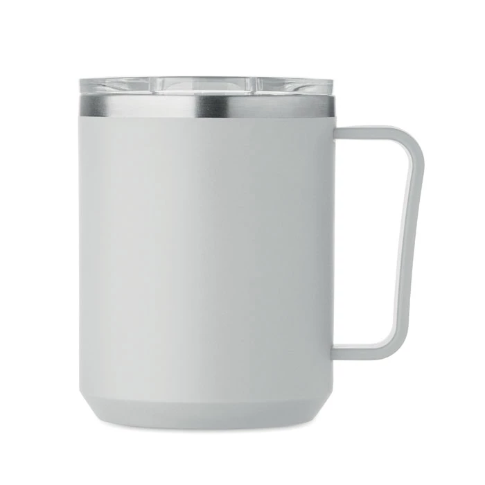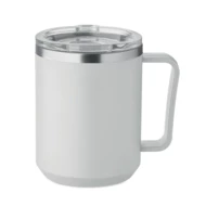 Kubek o podwójnych ściankach. Wnętrze 90% stal nierdzewna z recyklingu i 10% stal nierdzewna oraz zewnętrzna ścianka z PP z recyklingu. Ma przezroczystą pokrywkę przesuwną AS. Pojemność 400 ml.