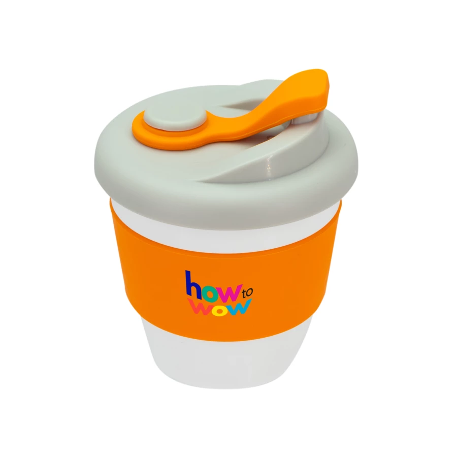 Kubek o pojemności 227 ml, który jest doskonałym towarzyszem każdego podróżnika. Ten kubek wyróżnia się silikonową pokrywką z funkcjonalnym, szczelnie zamykanym ustnikiem. Jego kolorowe silikonowe elementy dodają stylu i sprawiają, że jest to nie tylko praktyczny, ale i modny gadżet. Wykonany z PLA, uzyskanego z materiałów recyklingowych, jest przyjazny dla środowiska. Jego kompaktowe rozmiary umożliwiają łatwe dopasowanie do większości uchwytów samochodowych, co czyni go idealnym wyborem dla osób często podróżujących.