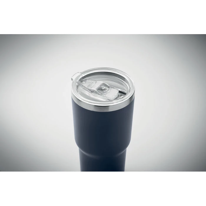 Kubek z podwójną ścianką ze stali nierdzewnej z recyklingu (90% stali nierdzewnej z recyklingu i 10% ze stali nierdzewnej). Pokrywka z przesuwanym otworem. Nie przecieka. Pojemność 500 ml.