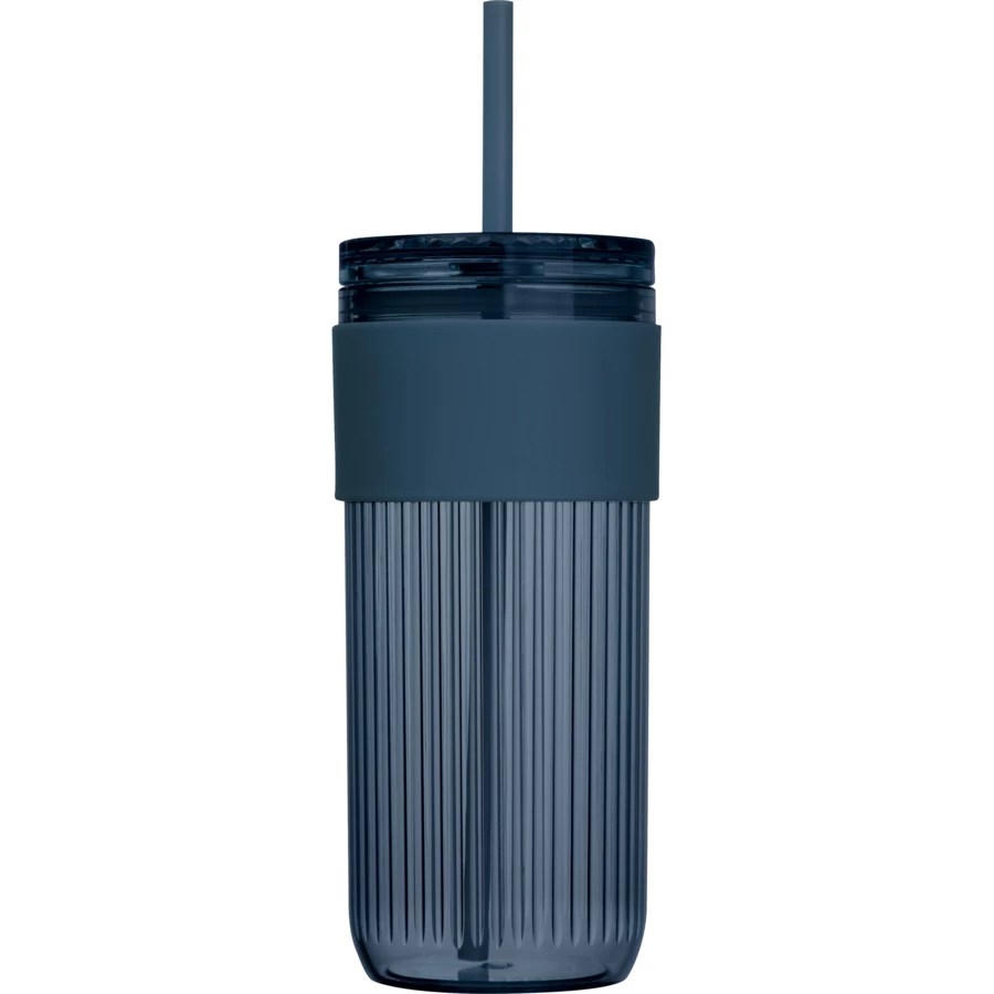 Ryflowany kubek, o pojemności 660 ml, ze słomką do picia i gumową strefą uchwytu.
