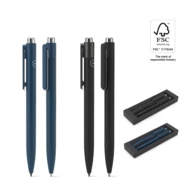 Zestaw składający się z długopisu i ołówka "wiecznego", wykonany z aluminium (94% z rAL). Długopis zawiera niebieski wkład, natomiast ołówek pozwala na długotrwałe pisanie bez konieczności temperowania. Zestaw zapewnia płynność i komfort podczas pisania. Całość zapakowana w pudełko prezentowe z papieru kraft, wykonanego z certyfikowanego papieru FSC™. Długopis: ø10 x 138 mm | Ołówek: ø10 x 138 mm | Etui: 172 x 53 x 22 mm