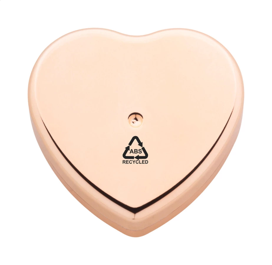 Waniliowy balsam do ust w opakowaniu w kształcie serca z metalicznym kolorem z ABS pochodzącego z recyklingu, z ochroną SPF15. Produkt nie zawiera składników pochodzenia zwierzęcego.