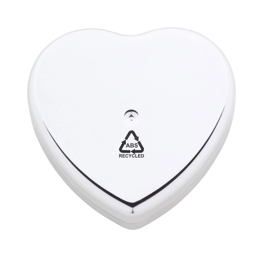 Waniliowy balsam do ust w opakowaniu w kształcie serca z metalicznym kolorem z ABS pochodzącego z recyklingu, z ochroną SPF15. Produkt nie zawiera składników pochodzenia zwierzęcego.