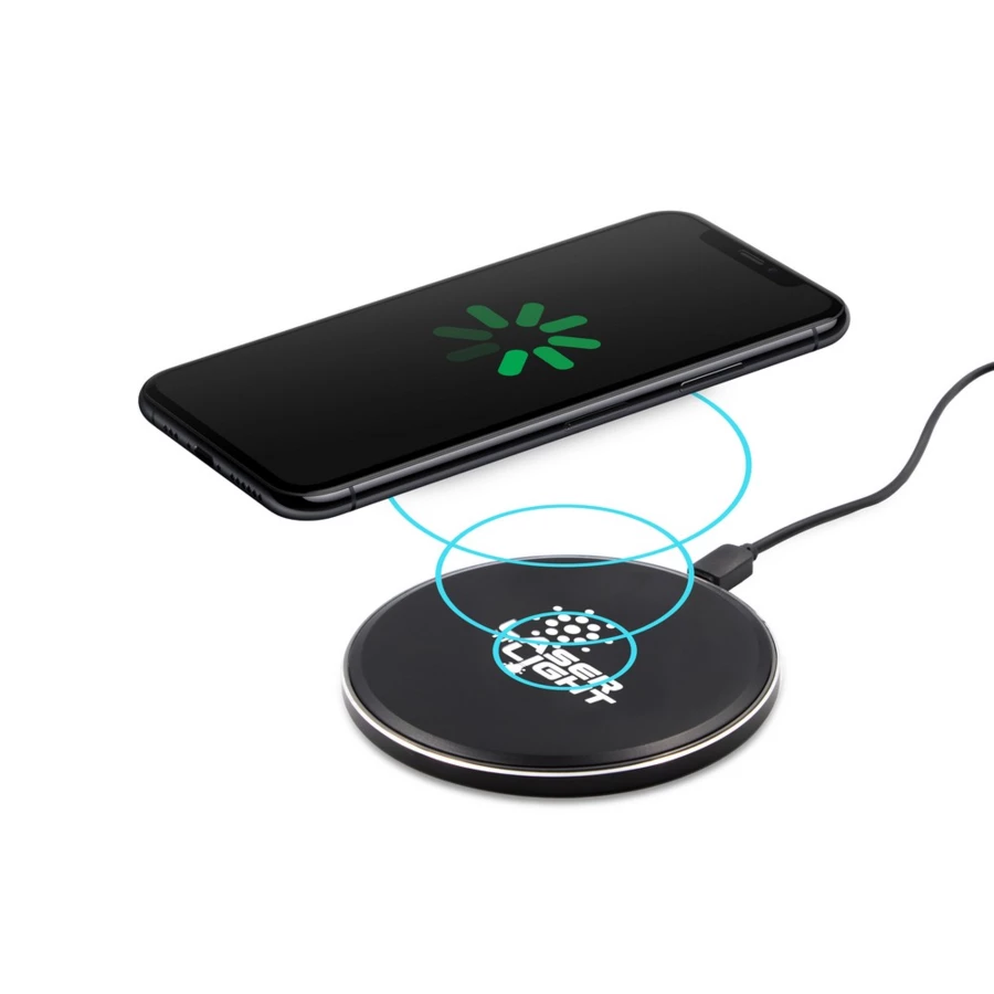 Ładowarka bezprzewodowa 15W Exclusive Collection, działa z urządzeniami posiadającymi możliwość ładowania indukcyjnego, grawer ukazuje podświetlaną powierzchnię, wejście USB-C 5V/2A, 9V/2A, kabel USB-C w komplecie