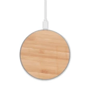 Bezprzewodowa szybka ładowarka z bambusa i aluminium. Niebieskie światło świeci podczas ładowania. Wyjście: DC9V/1.1A (10W). Bambus jest produktem naturalnym, dlatego mogą występować niewielkie różnice w kolorze i rozmiarze poszczególnych elem