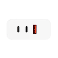 Ładowarka ścienna z wyjściem USB oraz 2 wyjściami USB-C, moc całkowita do 65W (USB-C1: max. 45W, USB-C2: max. 20W, USB-A: max 18W), wejście 100-240V, wyjście USB-C 5-15V/3A, wyjście USB 5-12V/1.5-3A, do użytku wewnątrz pomieszczeń