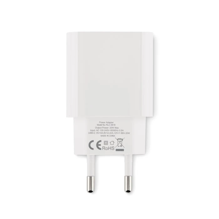 2-biegunowy adapter ścienny/ładowarka UE. Obsługuje technologię szybkiego ładowania (20 W). 1 Typ C. Obsługuje technologię Quick Charge 3.0/Power Delivery. Nie nadaje się do użytku w Wielkiej Brytanii.