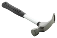 Młotek ze stali węglowej z otwieraczem do butelek i gumowym uchwytem.