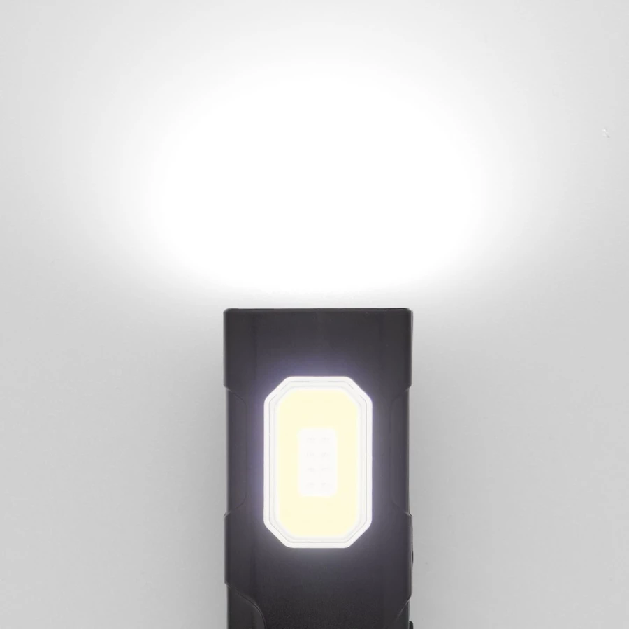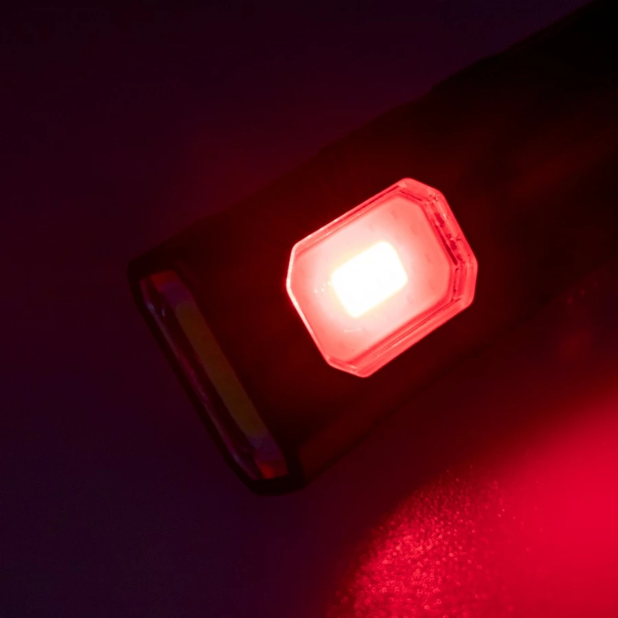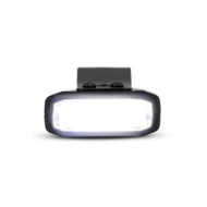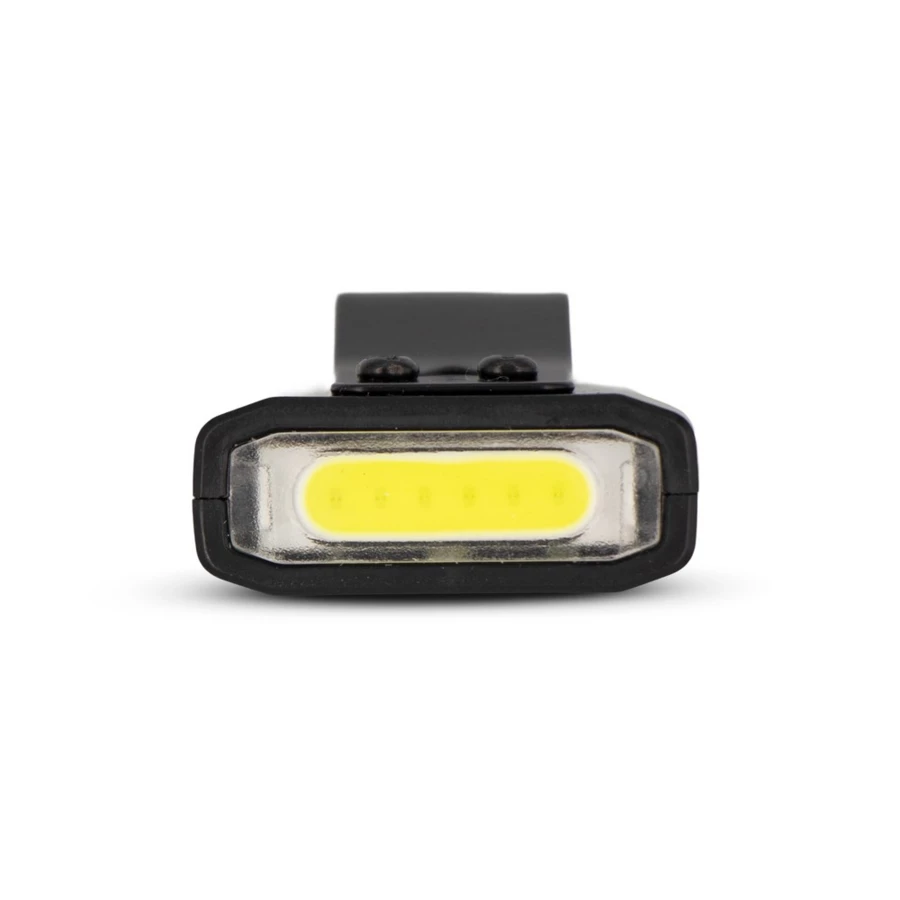 Lampka aluminiowa z klipsem, do przypięcia na plecak lub odzież, 2 diody COB, 5 trybów: 100% przednia lampka, 50% przednia lampa, 100% boczna lampka, 50% boczna lampka, migające światło czerwone boczna lampka, posiada magnes na tylnej stronie, ładowanie lampki przez port USB-C; kabel do ładowania w komplecie
