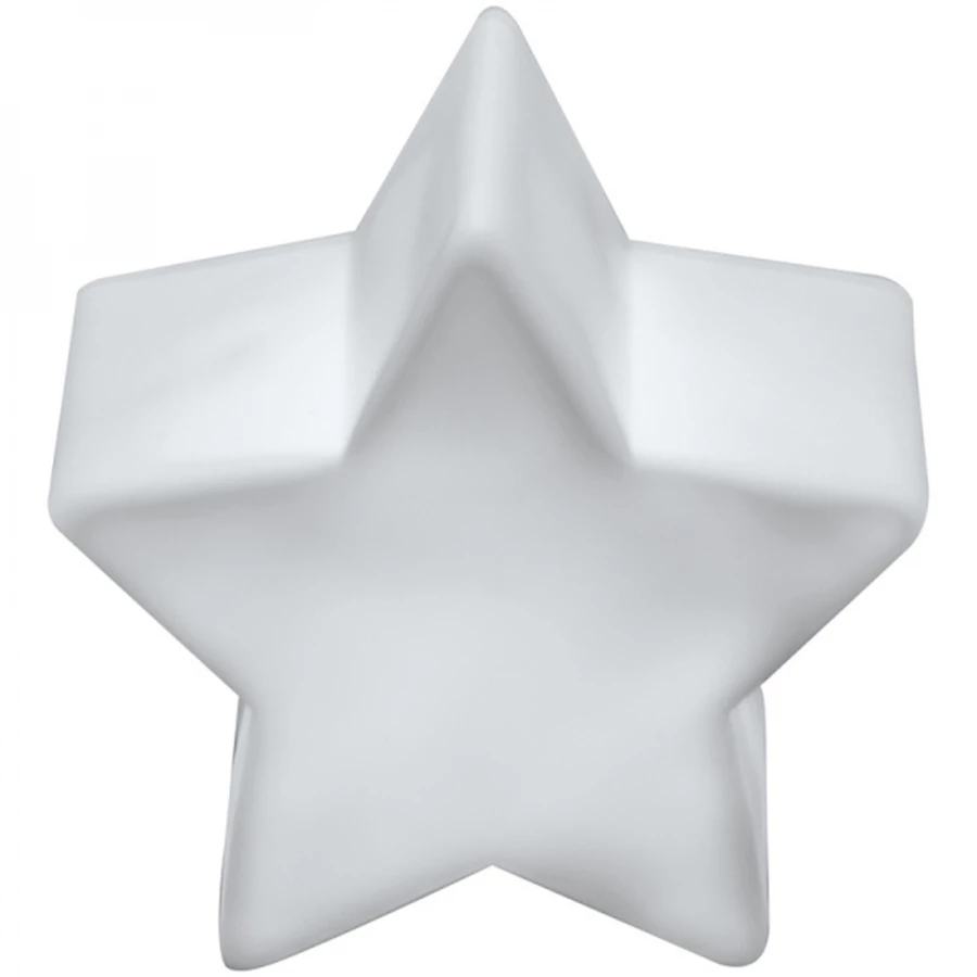Biała, plastikowa lampka LED w kształcie gwiazdki zmieniająca kolory. Lampka zawiera 3 baterie.